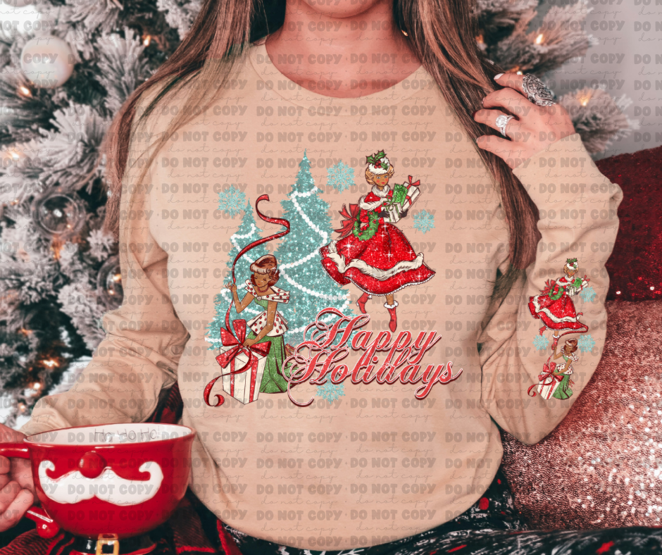 3056 Happy Holidays with sleeve *DREAM TRANSFER* DTF