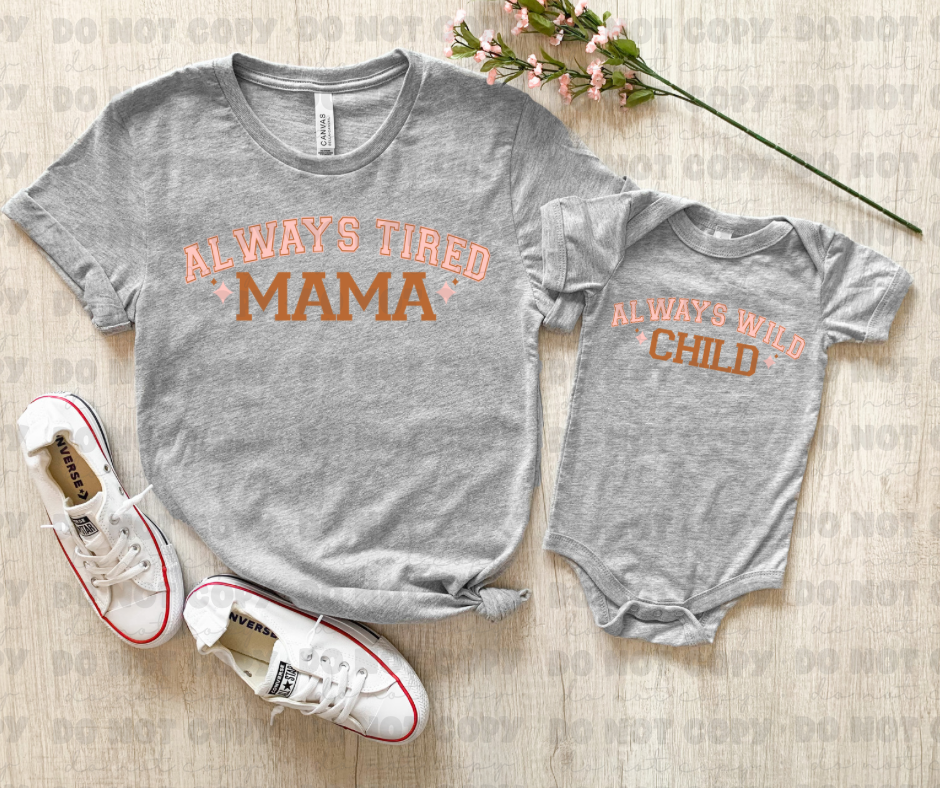 3163 & 3164 Always Tired Mama or Always Wild Child -CHOOSE YOUR DESIGN- *DREAM TRANSFER* DTF