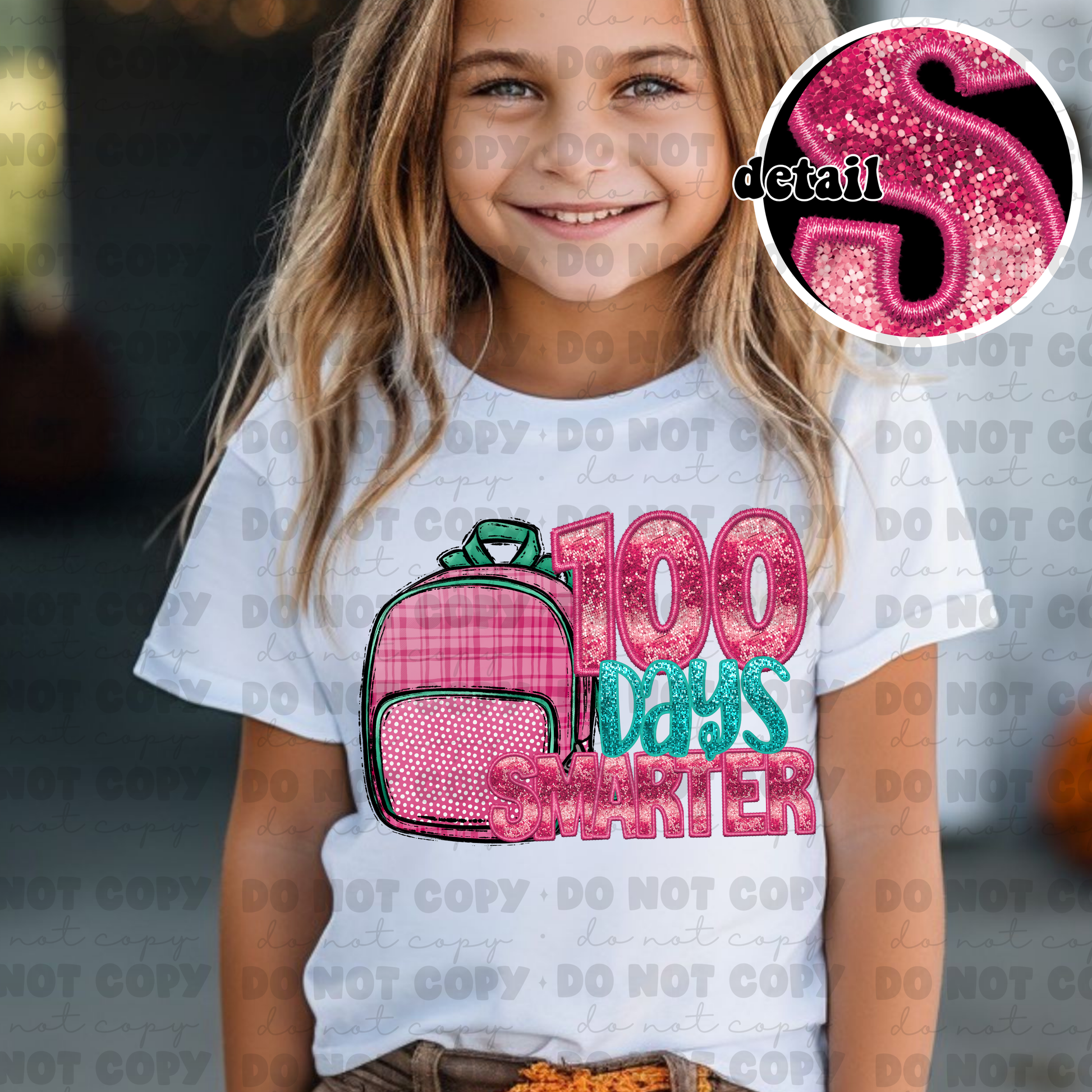 3301 - 100 Days smarter backpack Faux glitter embroidery *DREAM TRANSFER* DTF