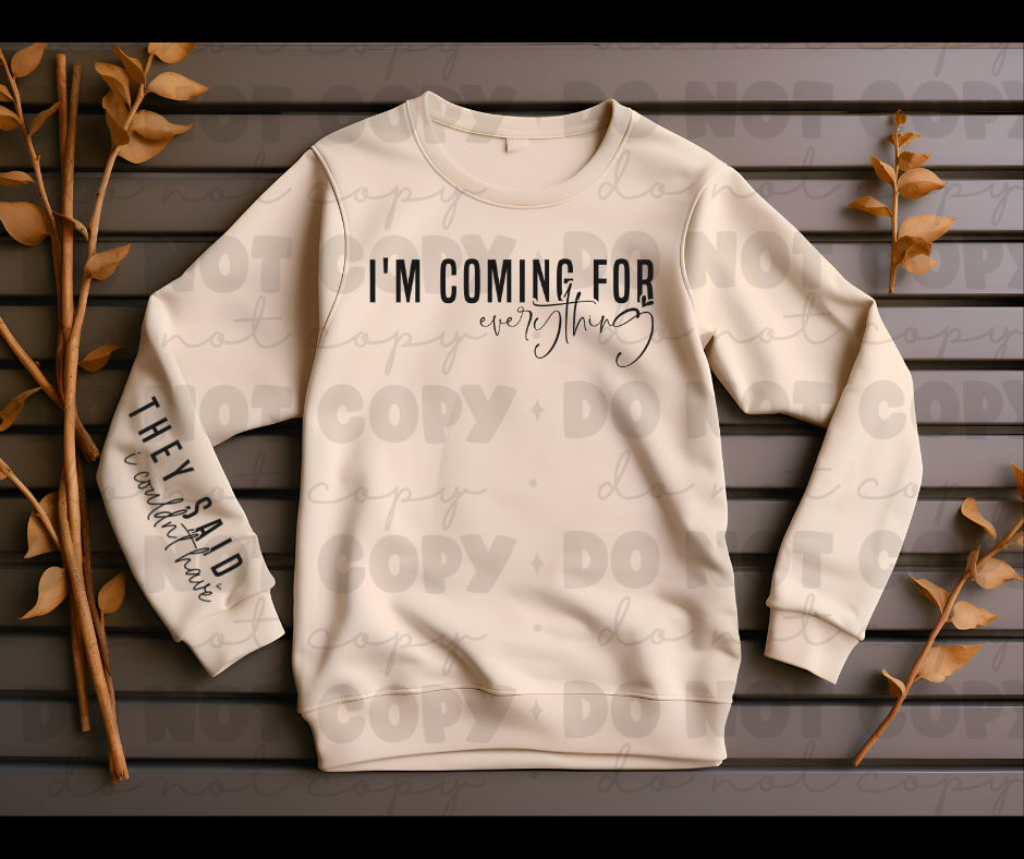 3694 I'm coming for everything they said i couldn't have with sleeve *DREAM TRANSFER* DTF