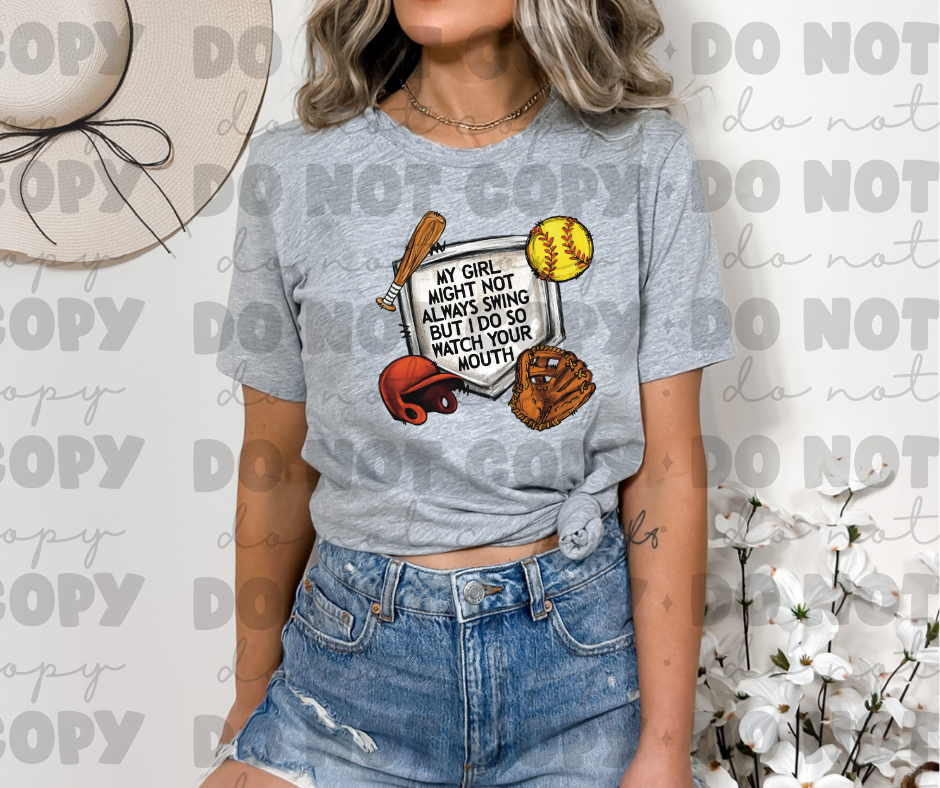 4071 My girl might not always swing but I do so watch your mouth Softball *DREAM TRANSFER* DTF