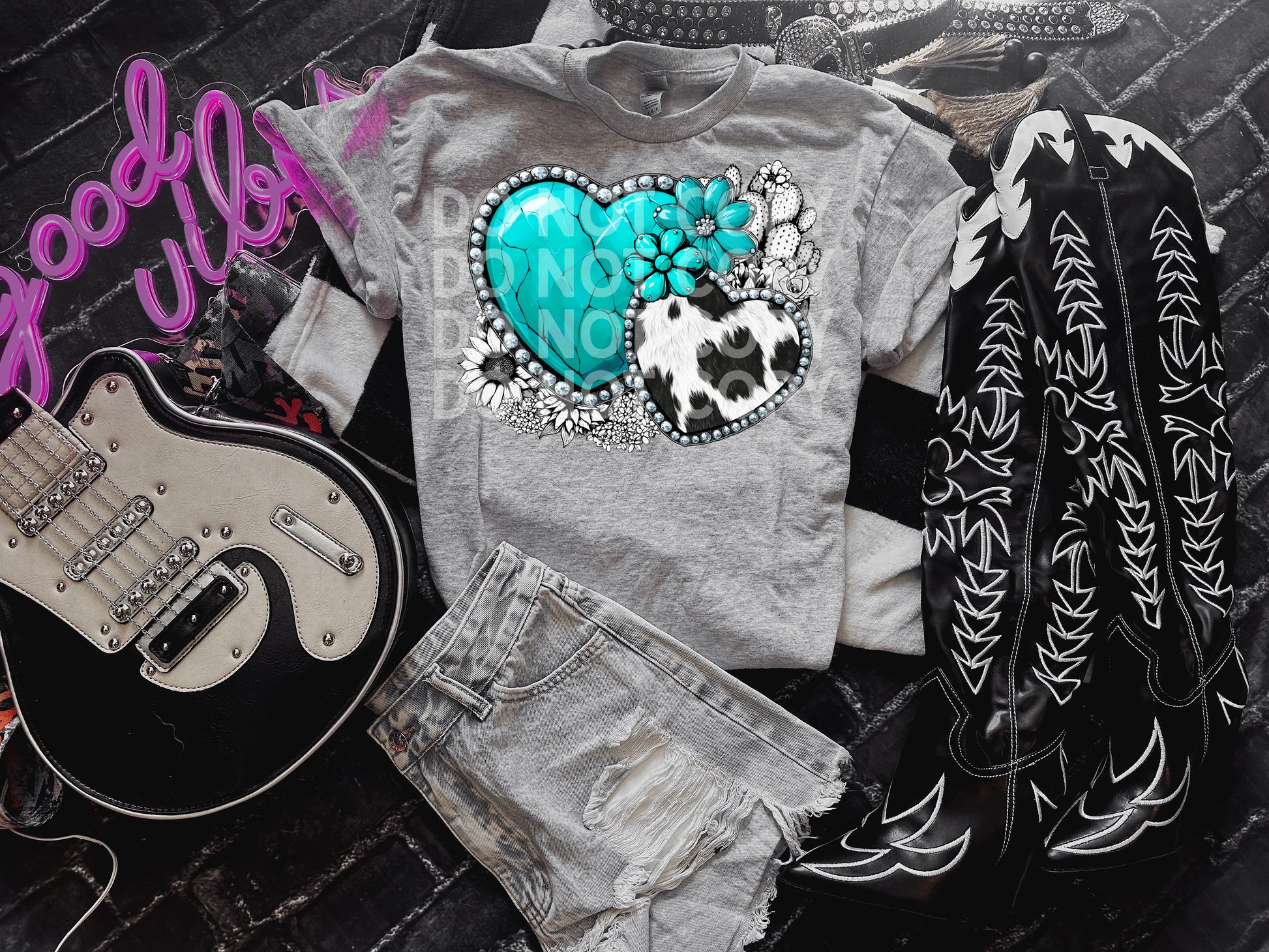 4899 -Turquoise cow western hearts *DTF