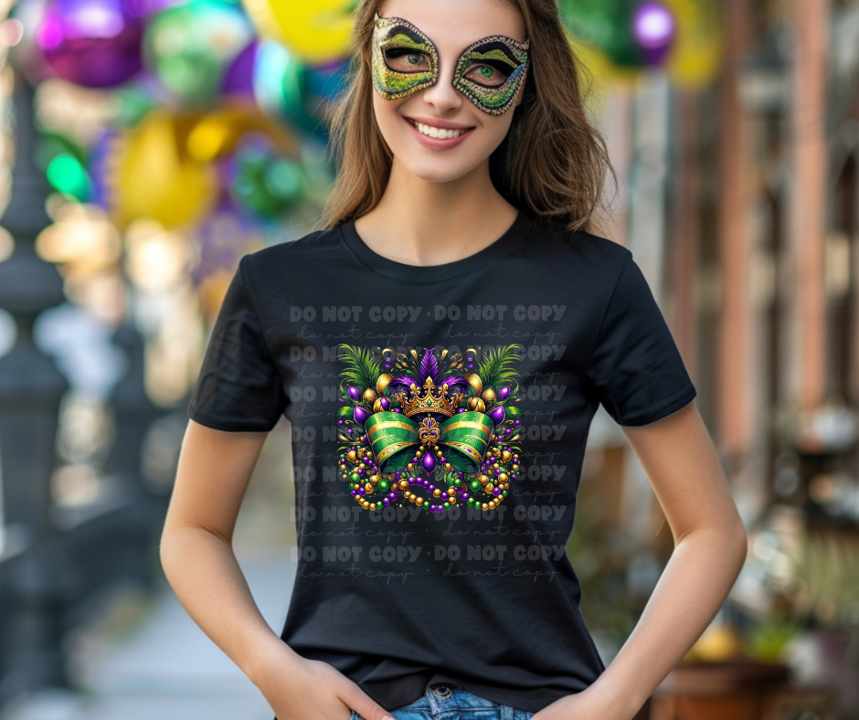5029 - Mardi Gras Coquette bow with beads *DTF