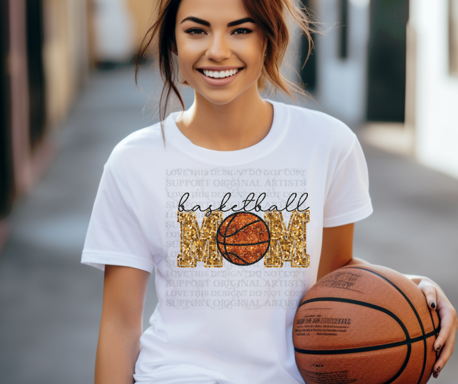 5195 - Faux glitter Basketball mom yellowish gold lettering *DTF