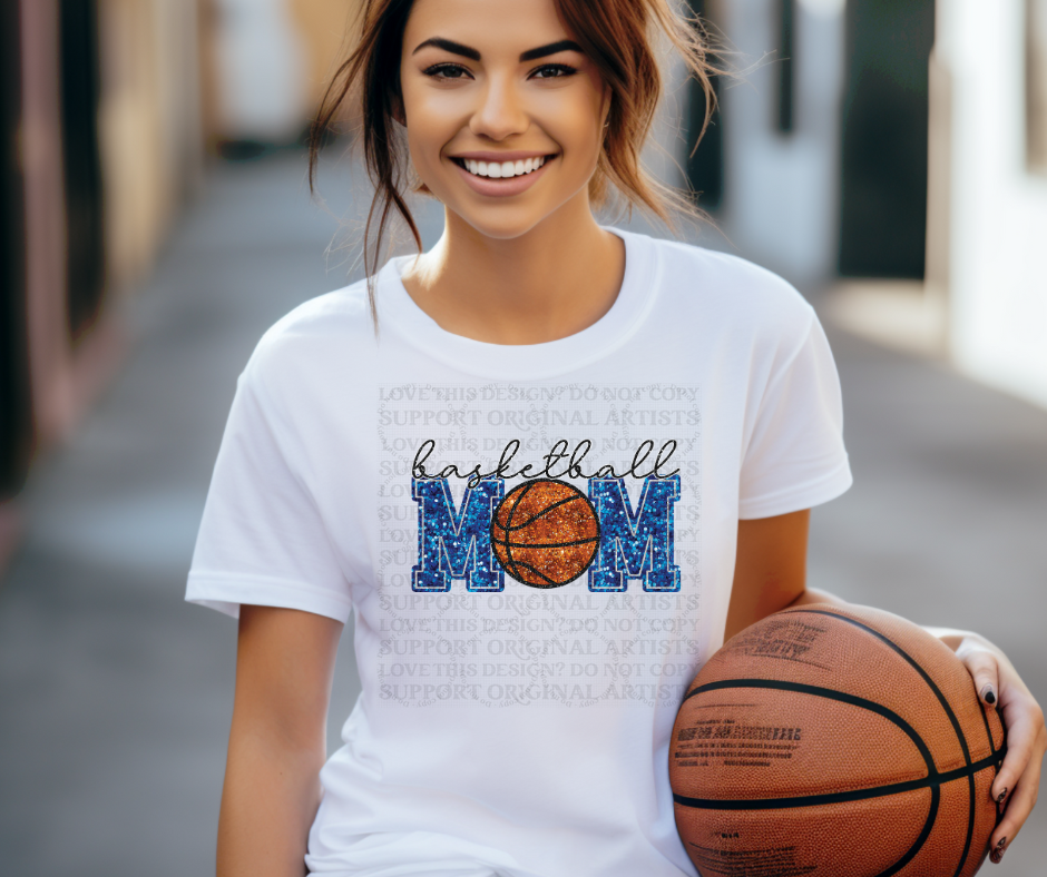 5197 - Faux glitter Basketball mom blue lettering design *DTF