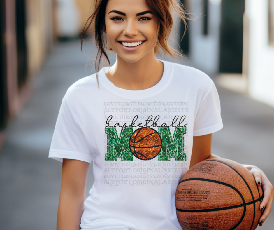 5199 - Faux glitter Basketball mom green lettering *DTF