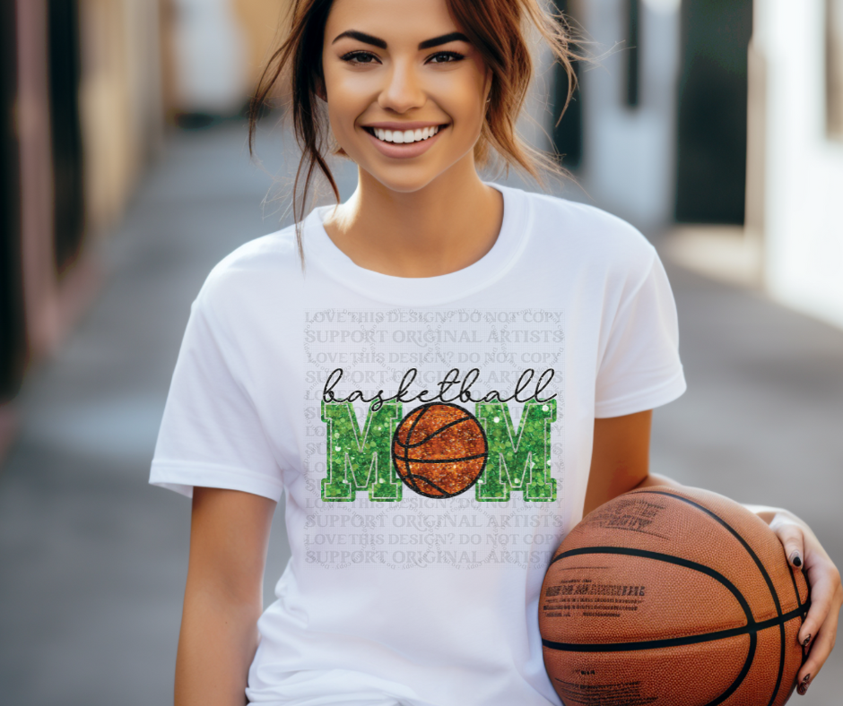 5200 - Faux glitter Basketball mom light green lettering *DTF