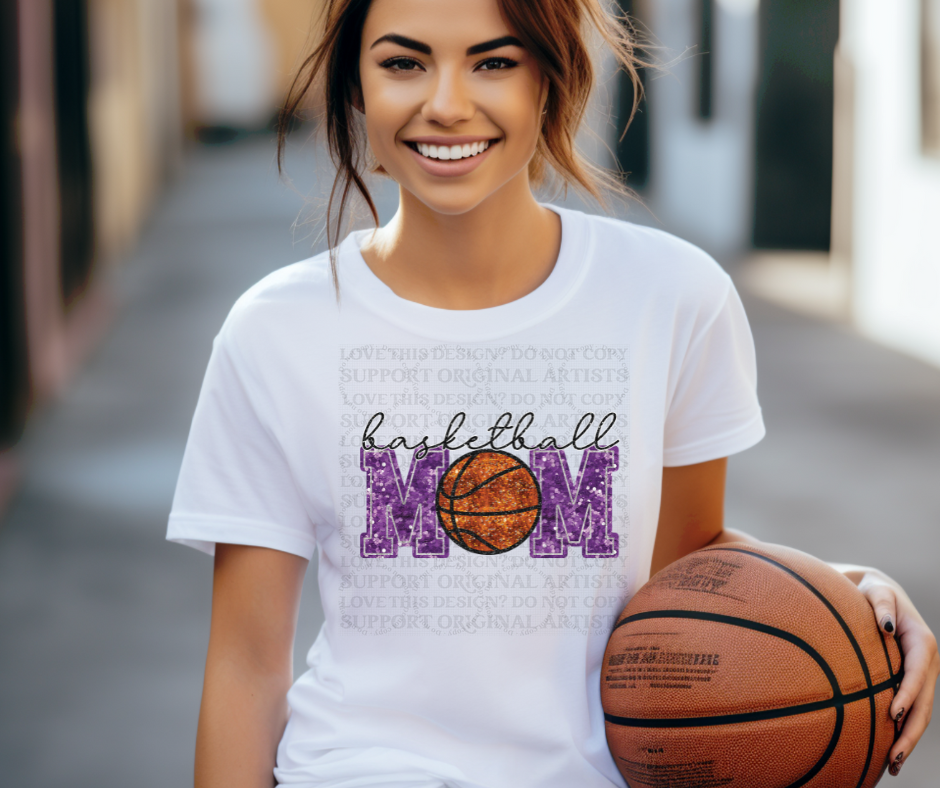 5202 - Faux glitter Basketball mom purple lettering *DTF