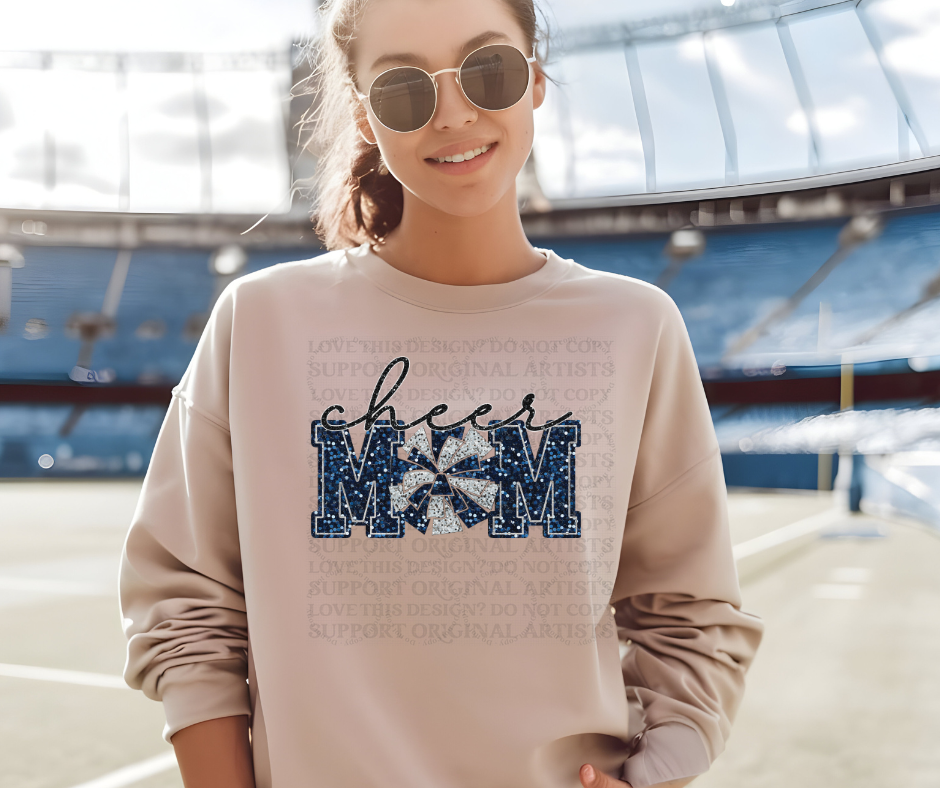 5225 - Cheer Mom faux glitter Dark blue *DTF