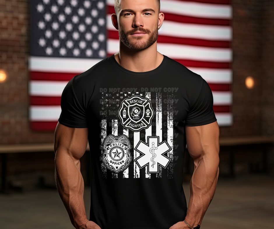 6326 - Fire Police EMS White Flag * DTF Transfer