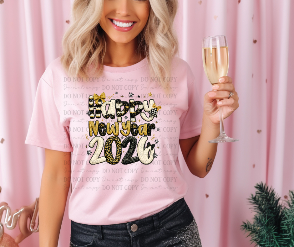 6606 - Happy new year 2026 faux yarn *DTF Transfer