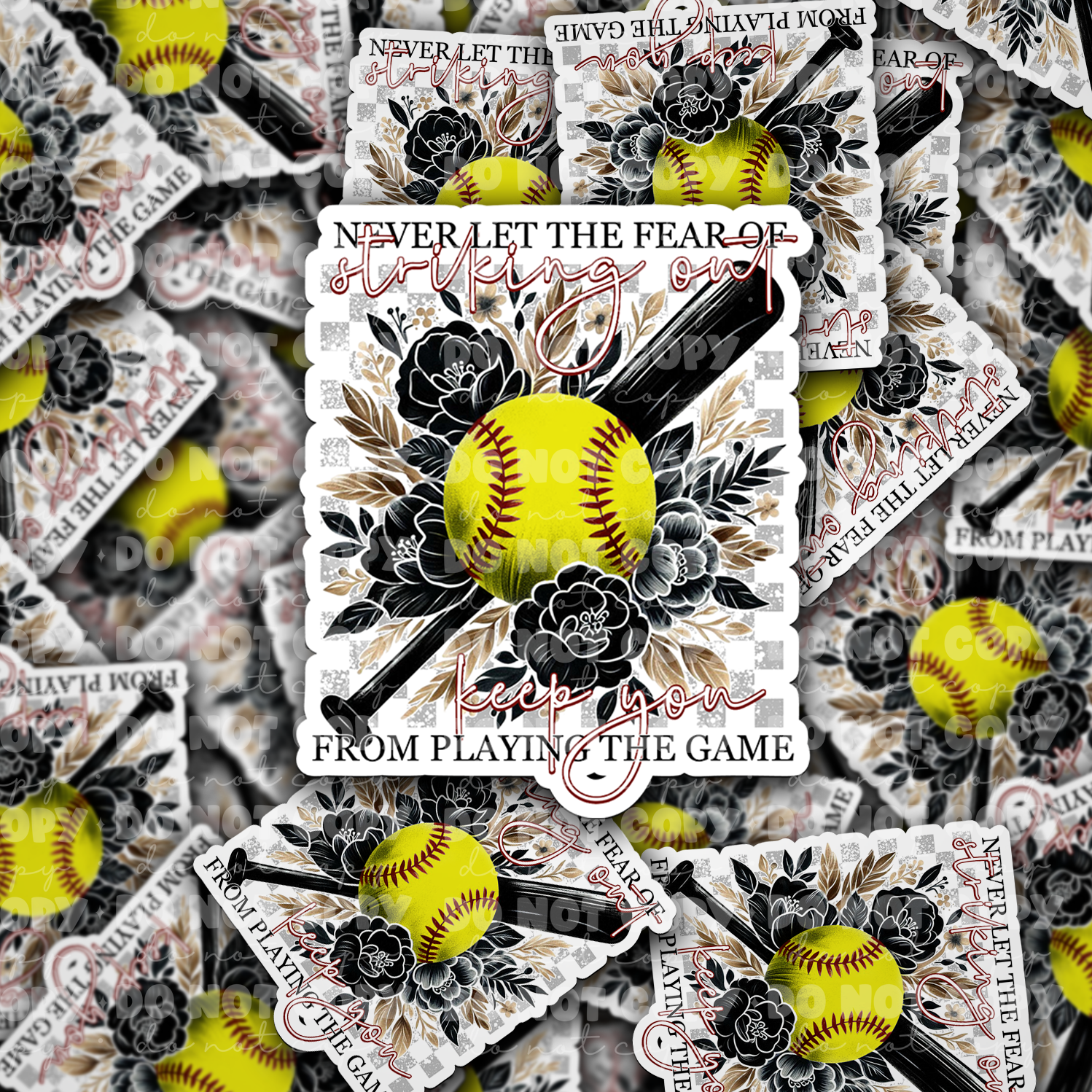 DC 1011 Never let the fear of striking you out keep you from playing the game softball Die cut sticker