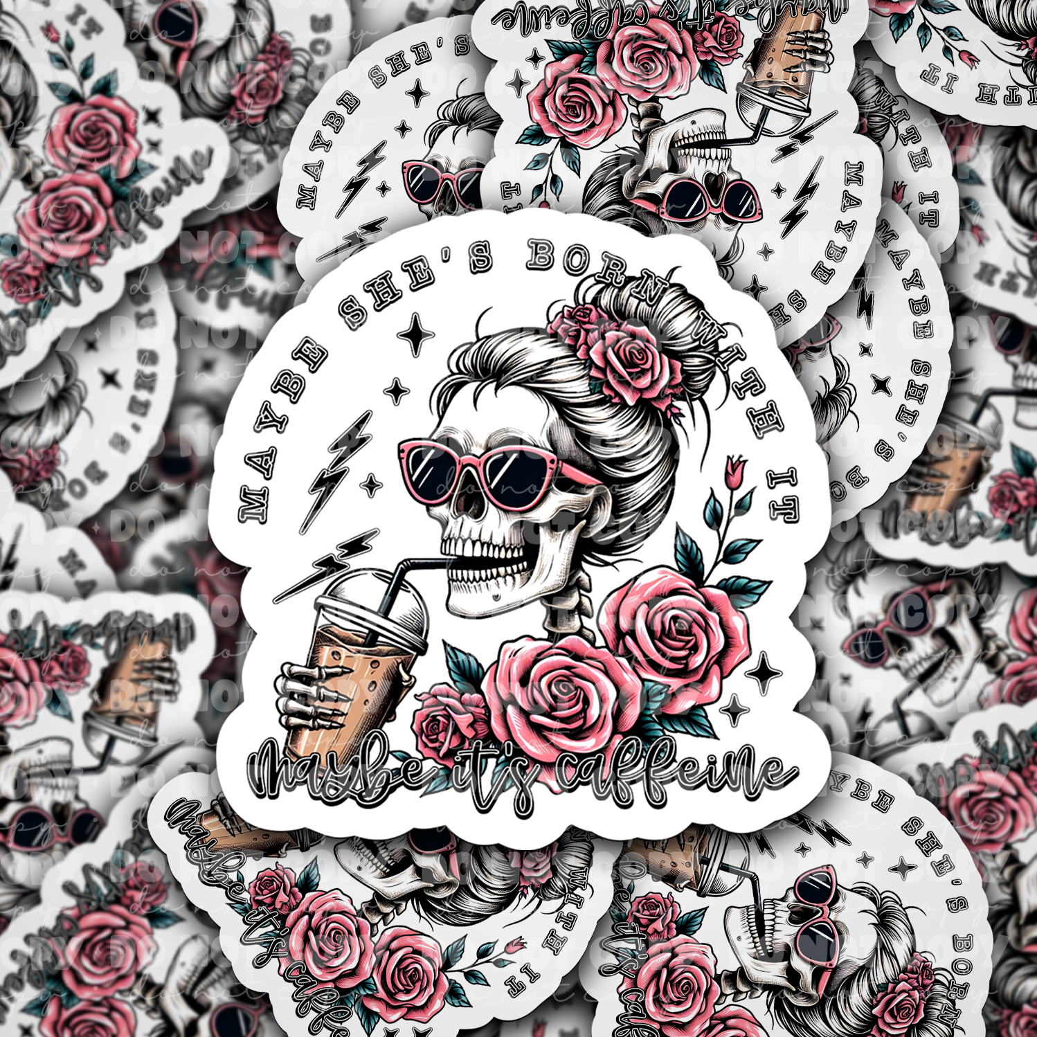 DC 1032 Maybe she's born with it maybe it's caffeine Die cut sticker