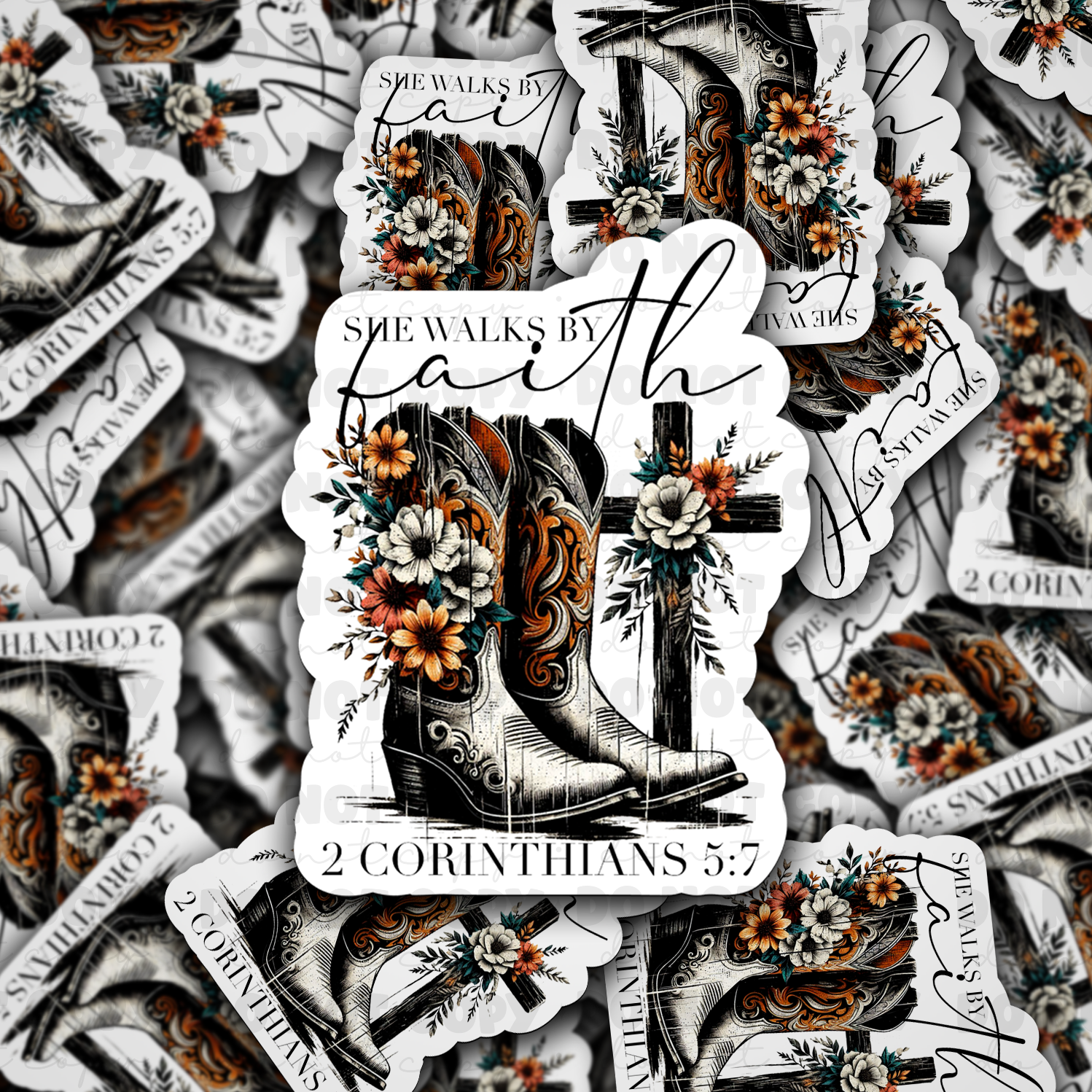 DC 1075 She walks by faith Die cut sticker