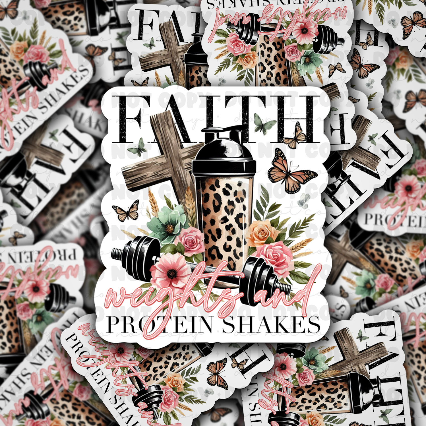 DC 1077 Faith weights and protein shakes Die cut sticker