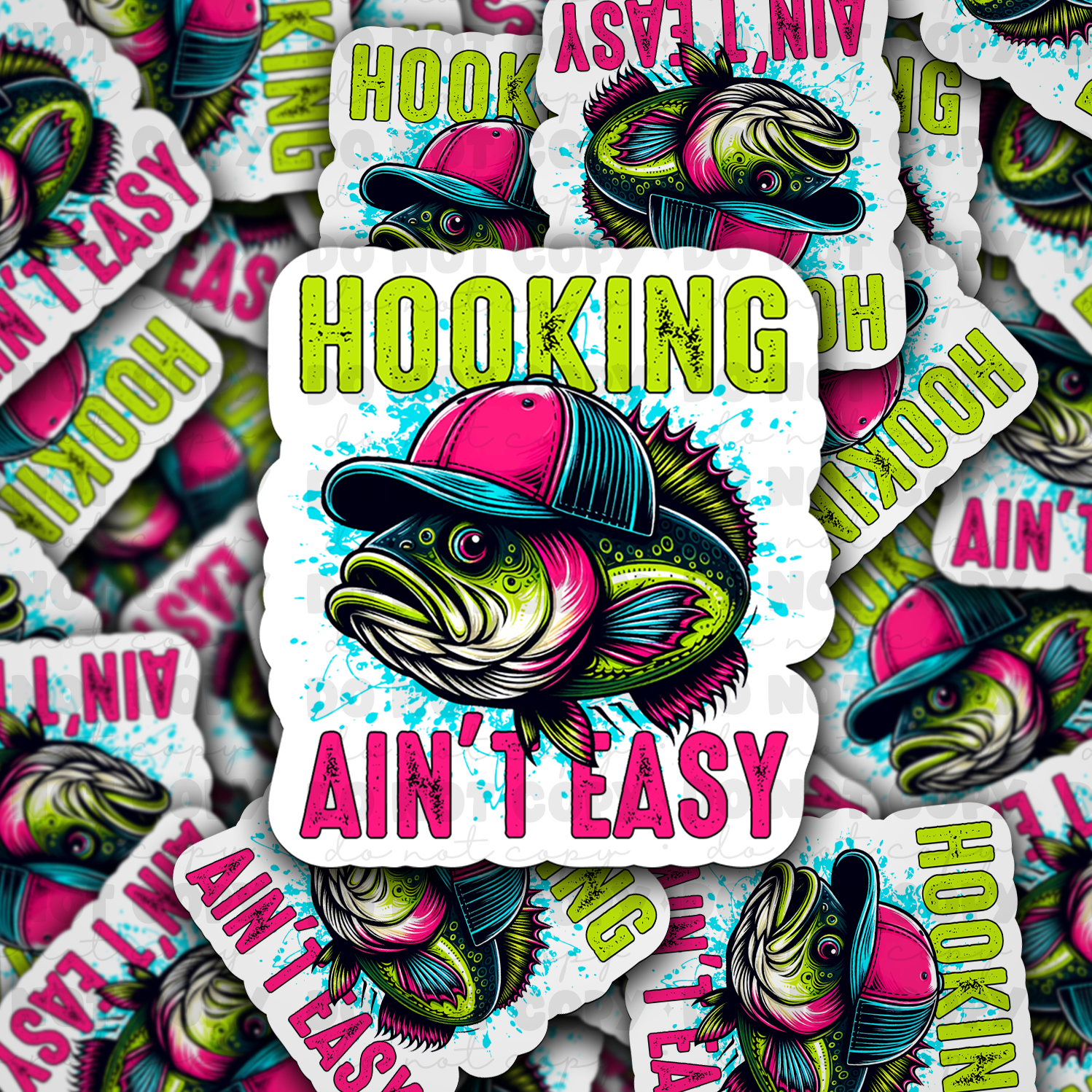 DC 1091 hooking ain't easy fishing Die cut sticker
