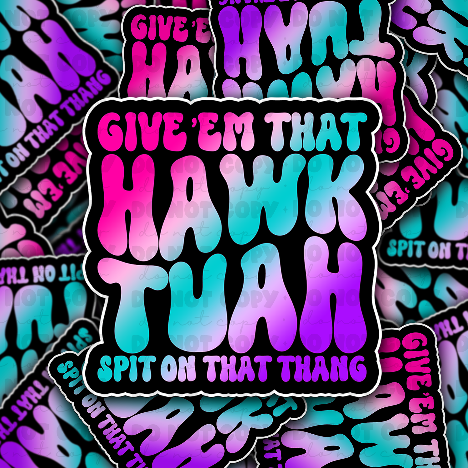 DC 1109 Give em that hawk tu ah Die cut sticker