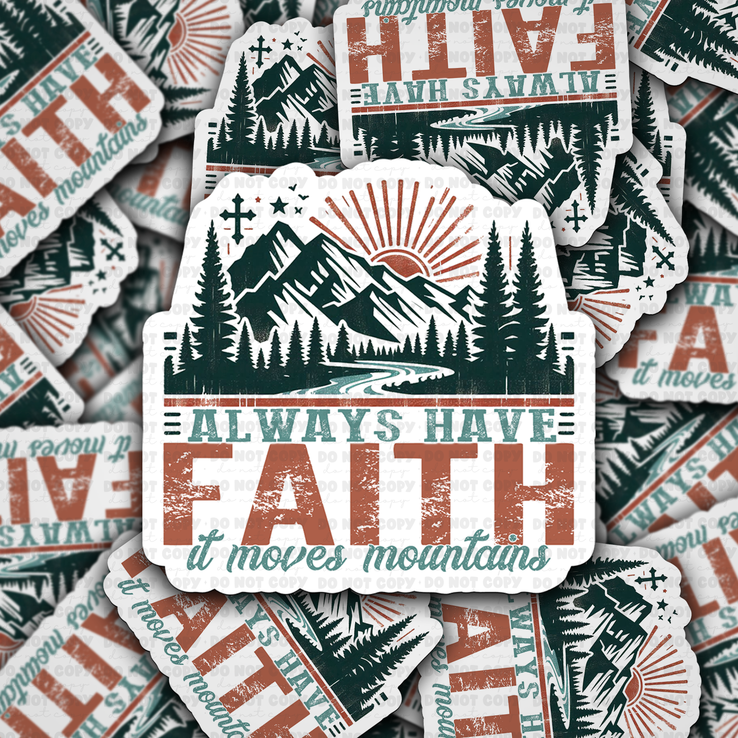 DC 1118 Always have faith it moves mountains Die cut sticker