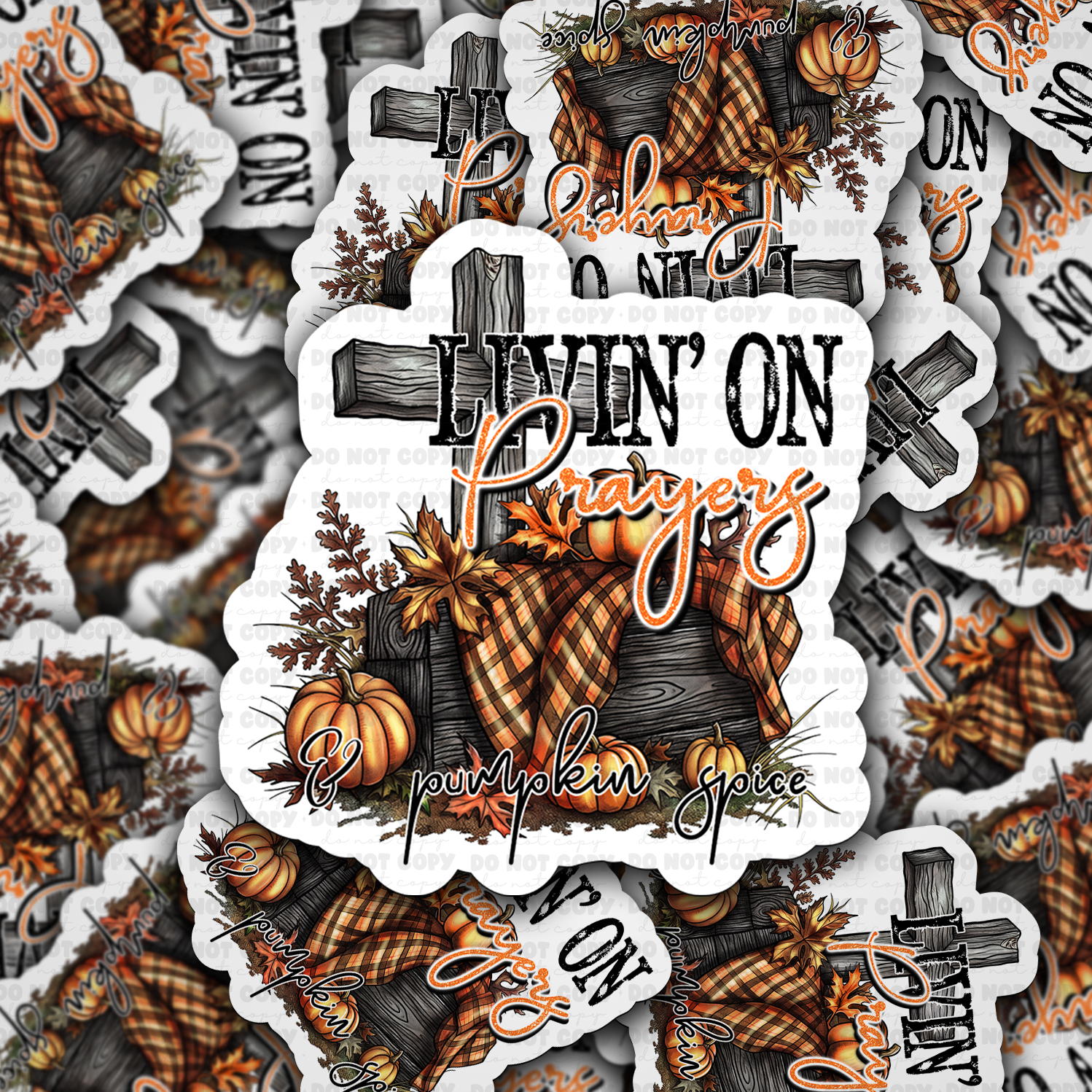 DC 1132 Livin on prayers and pumpkin spice Die cut sticker