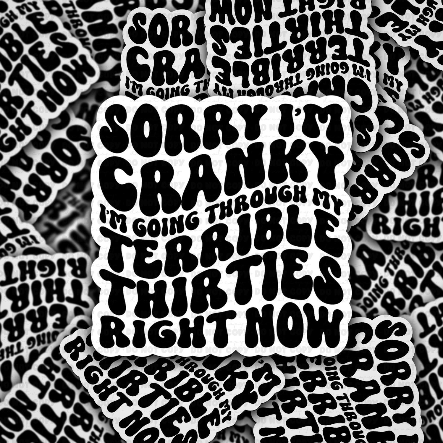 DC 1189 Sorry I'm cranky I'm in my terrible thirties Die cut sticker