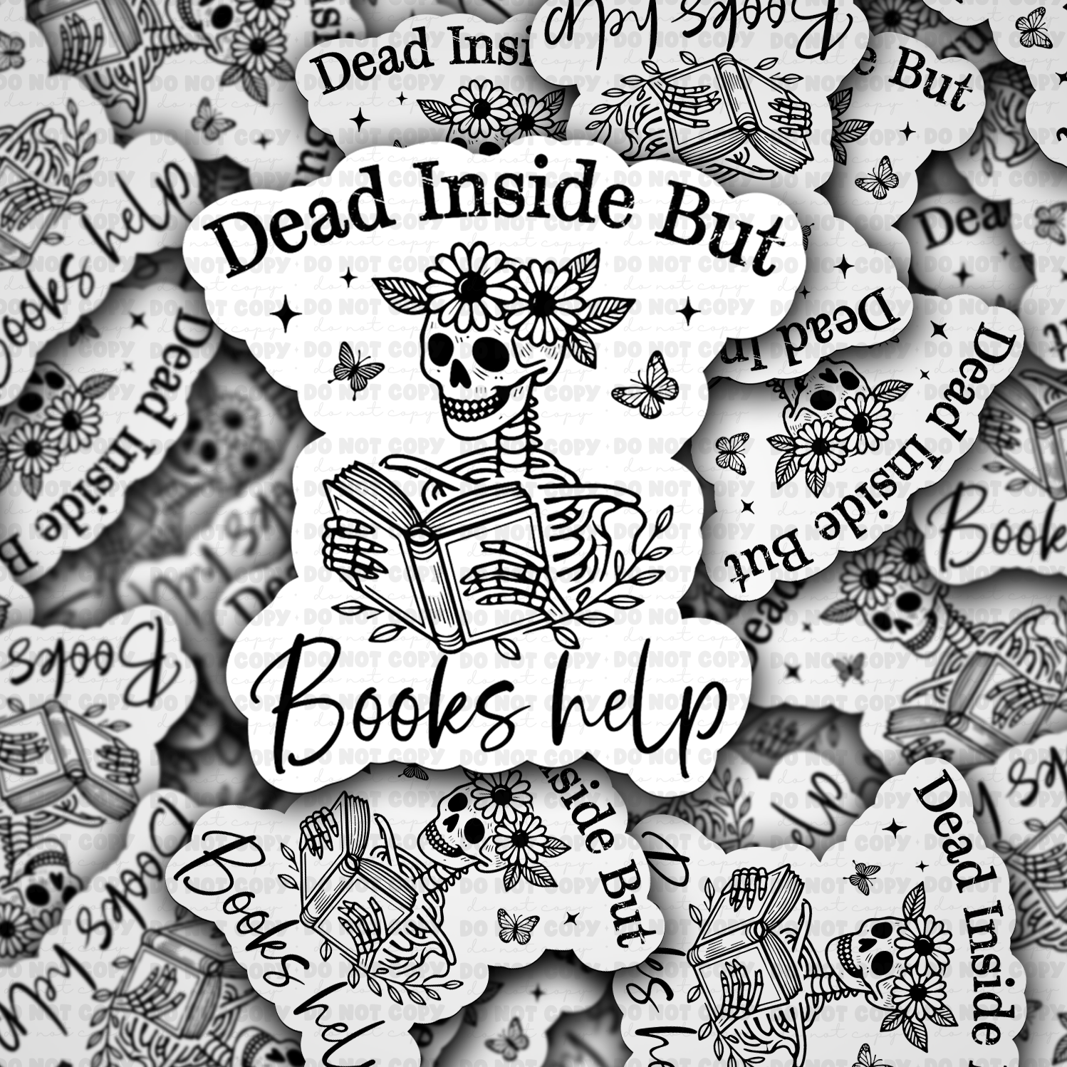 DC 1217 Dead inside but books help Die cut sticker