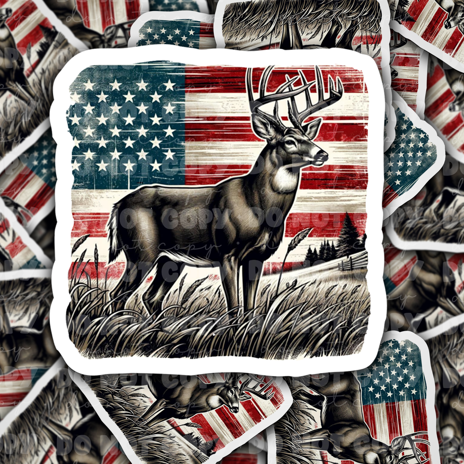 DC 1291 American flag with deer - die cut sticker