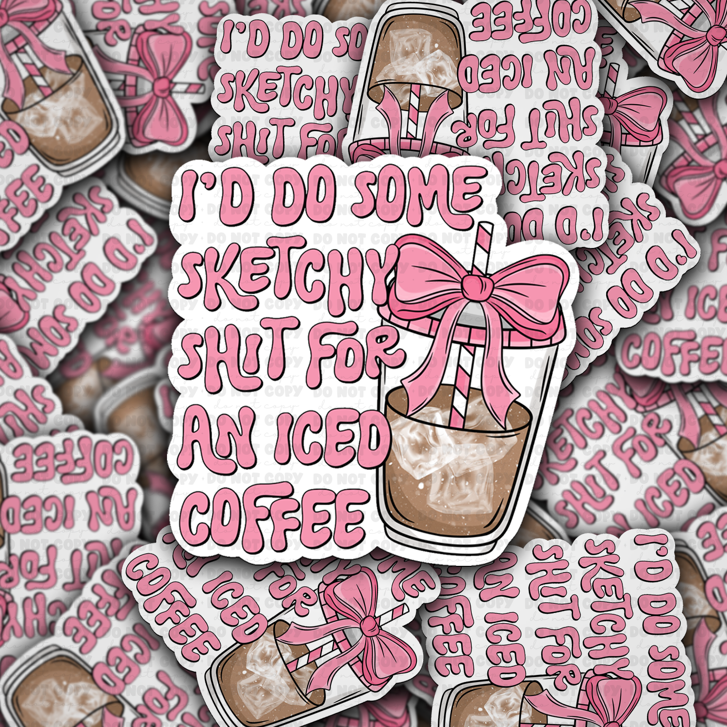 DC 1349 I'd do some sketchy stuff for an ice coffee - die cut sticker