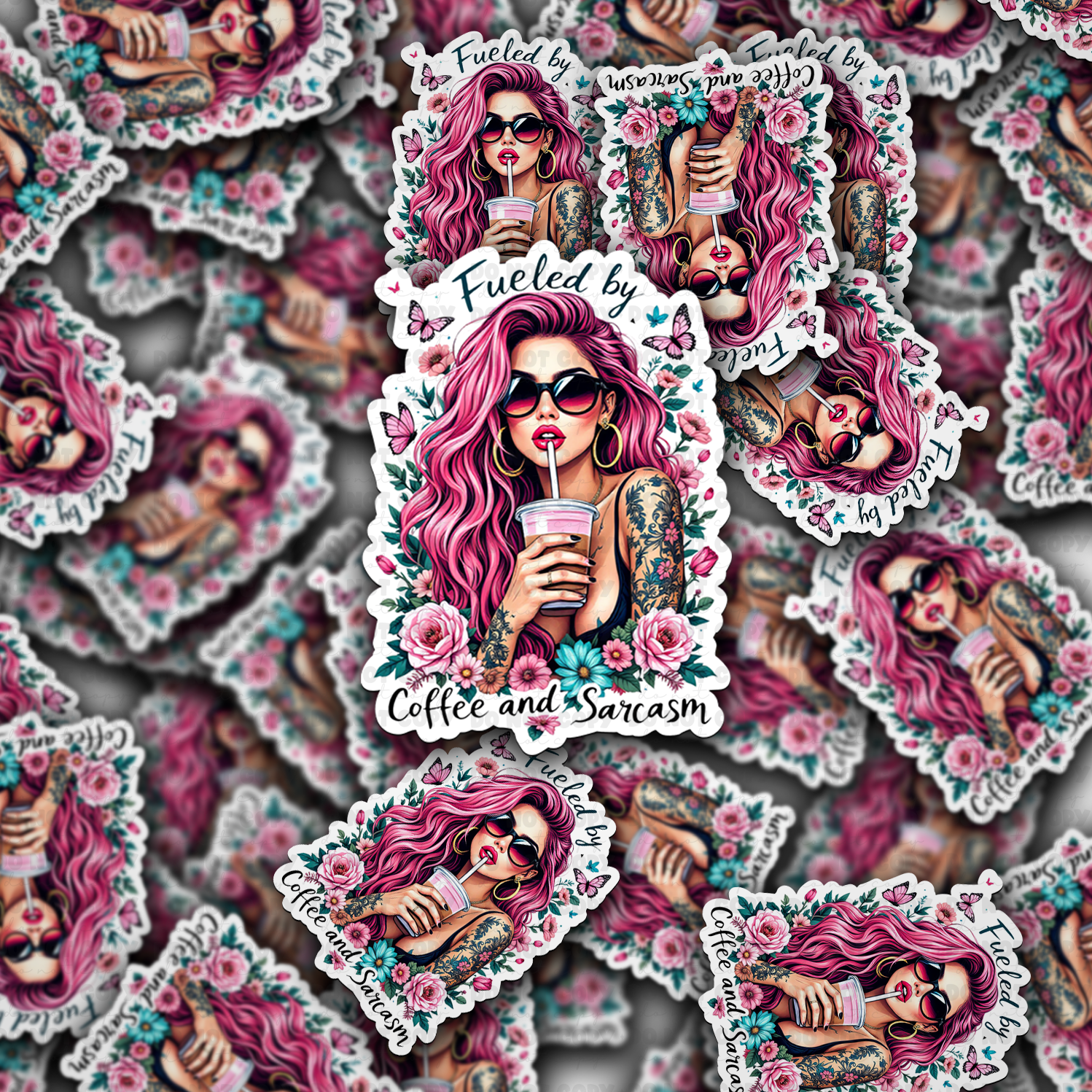 DC 1478 - Fueled by coffee and sarcasm die cut sticker