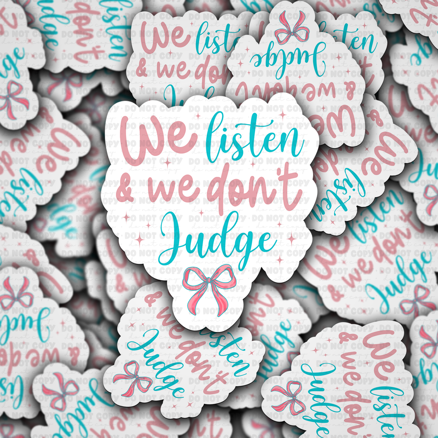 DC 1486 - We listen and we don't judge die cut sticker