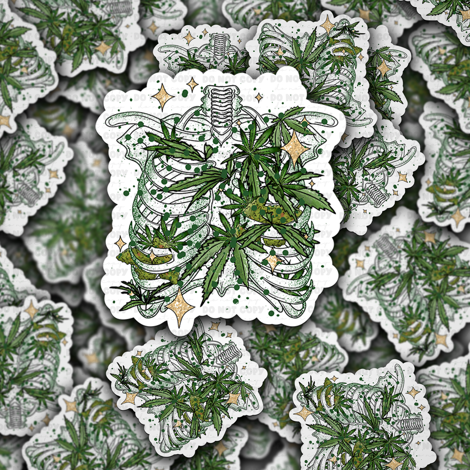 DC 1579 - Skeleton weed lungs rib cage Die Cut Sticker