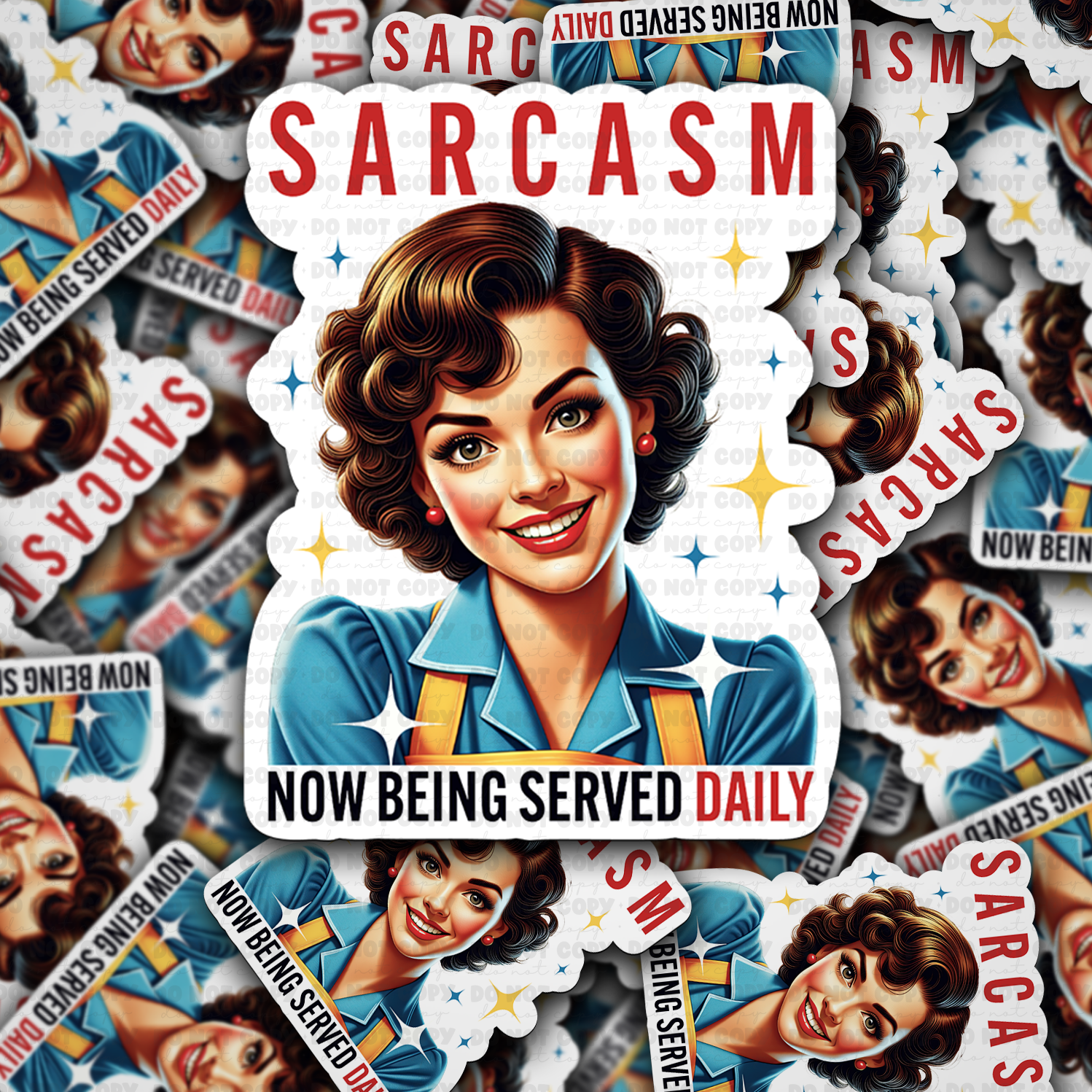 DC 1623 -Sarcasm now being served daily Die Cut Sticker