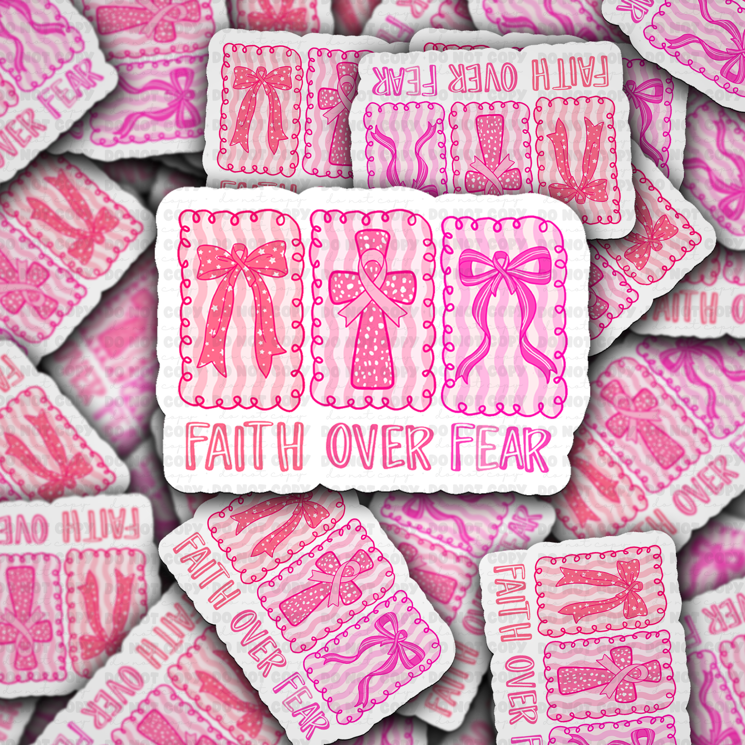 DC 2027 - Faith over fear pink cross and bows Die Cut Sticker