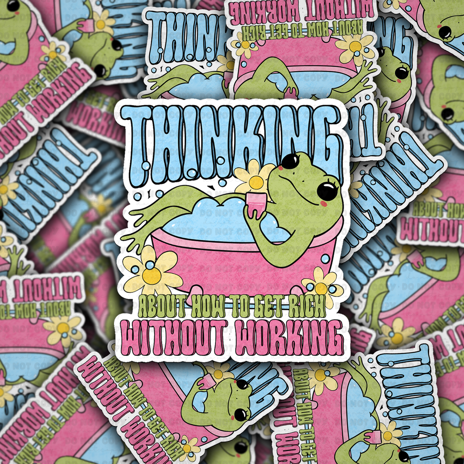 DC 2218 - Thinking about how to get rich without working Die Cut Sticker
