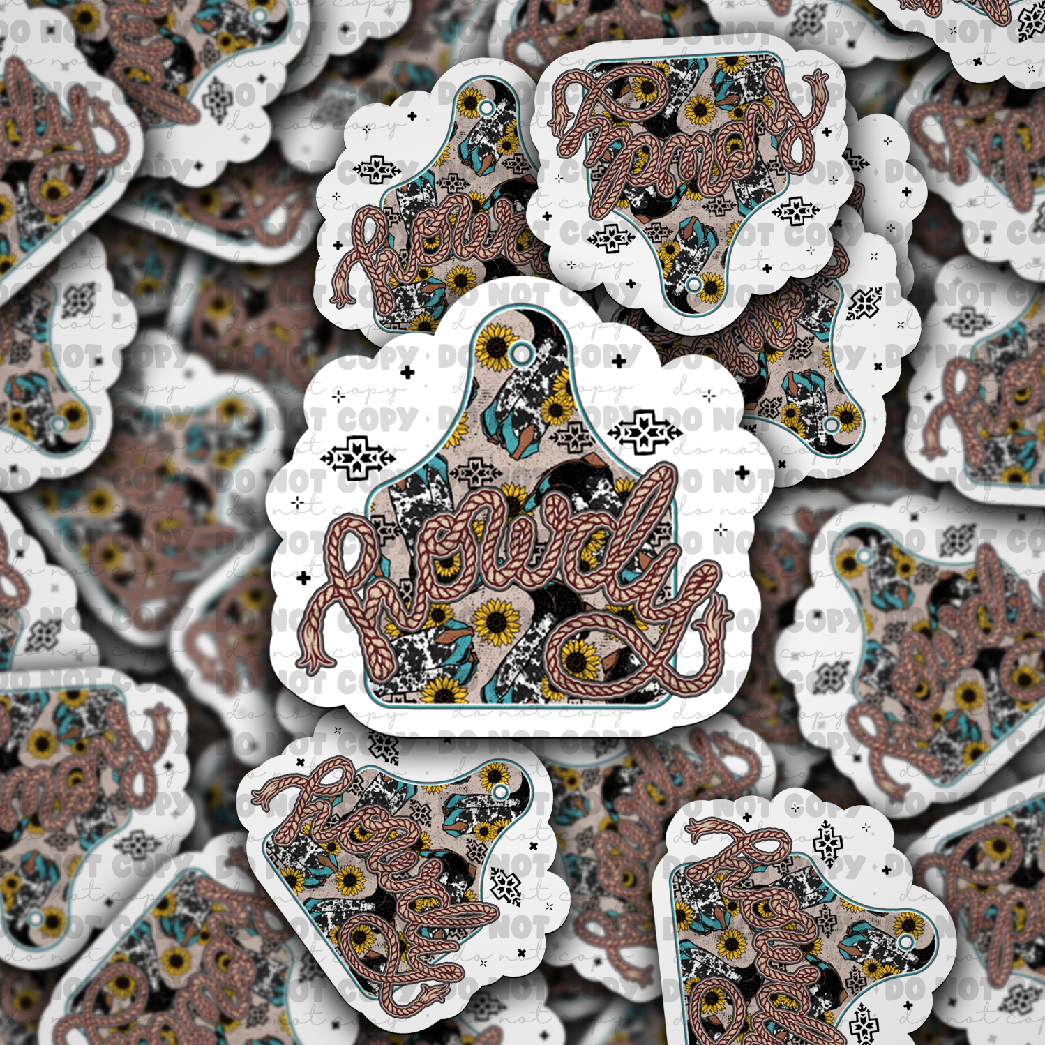 DC 788 howdy cow print sunflower Die cut sticker 3-5 Business Day TAT
