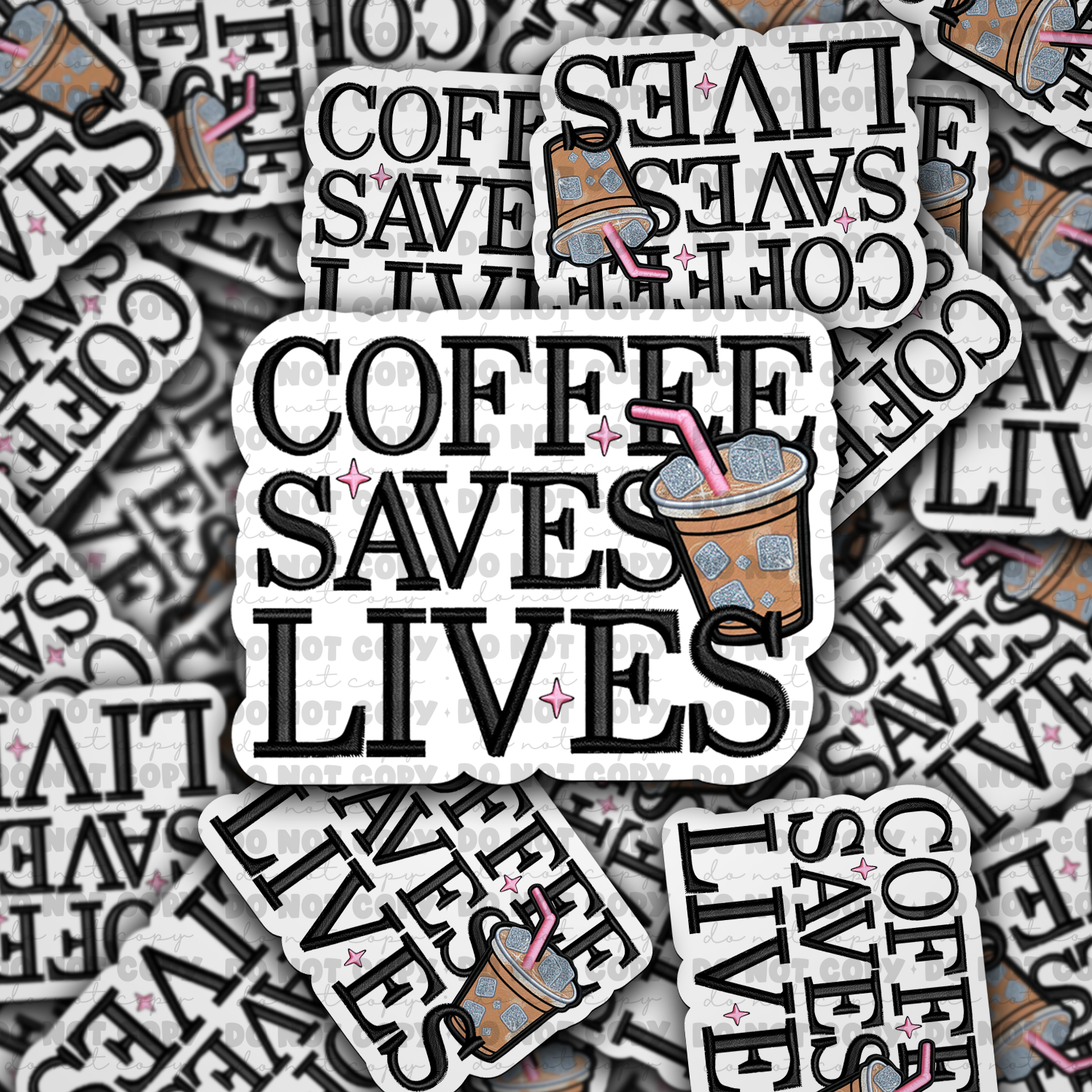 DC 817 Coffee saves lives Die cut sticker 3-5 Business Day TAT