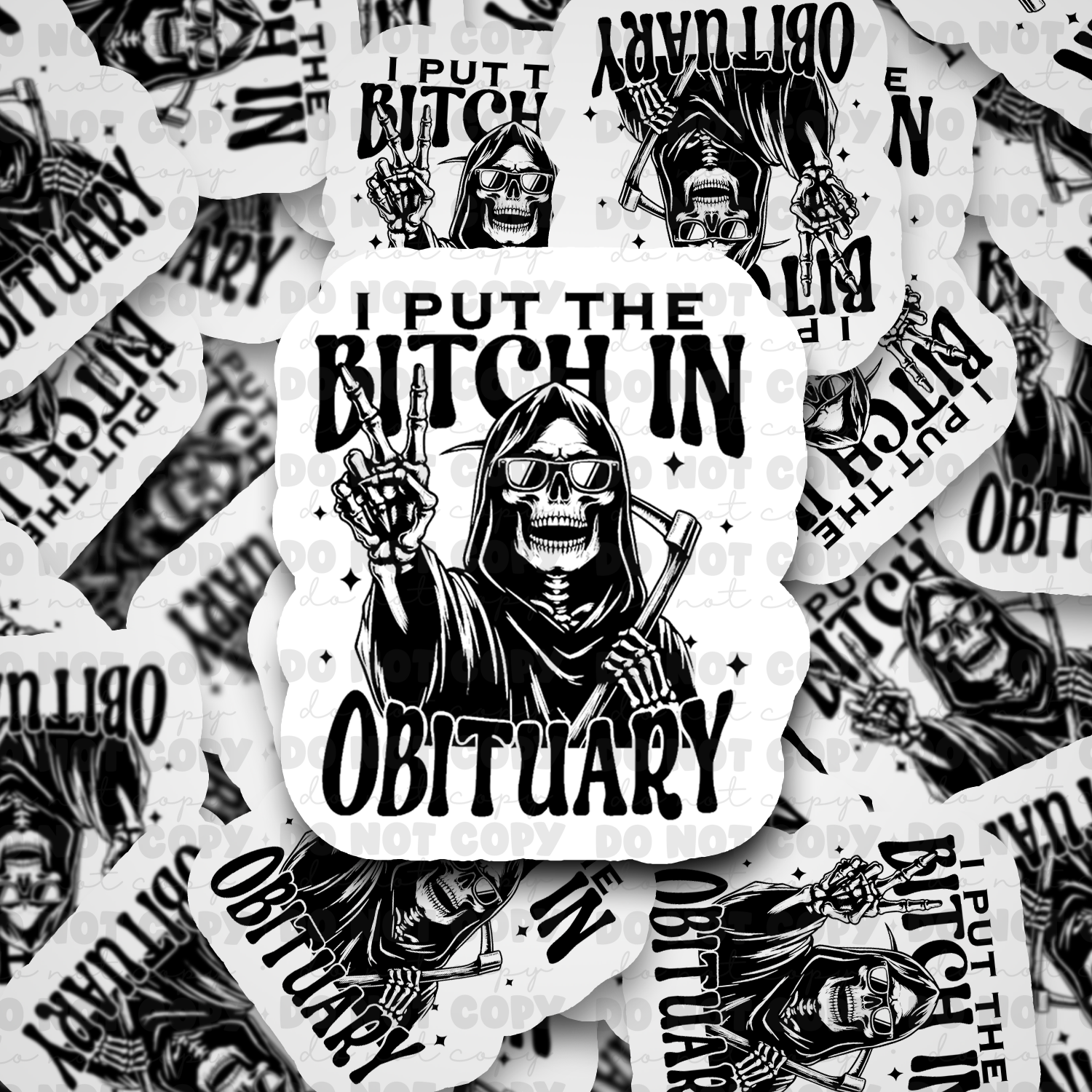 DC560 I put the bitch in obituary Die cut sticker 3-5 Business Day TAT