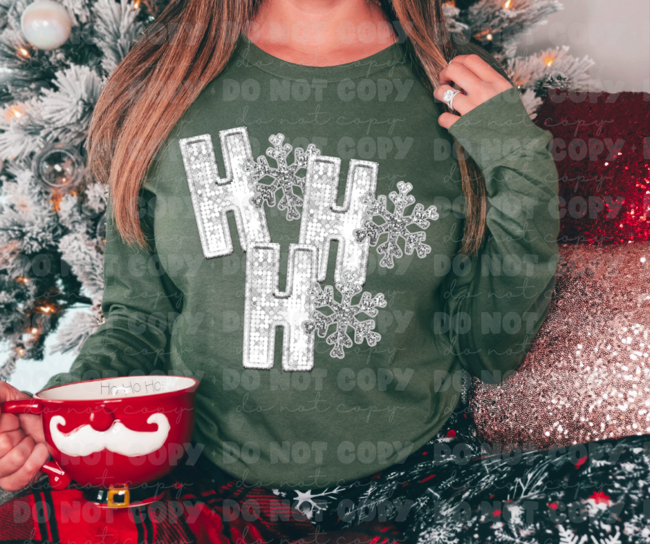 2902 Faux Glitter Ho Ho Ho snowflake *DREAM TRANSFER* DTF