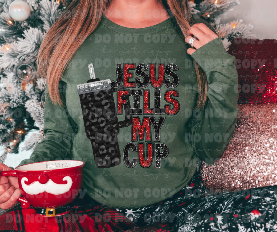 2916 Faux Glitter Jesus Fill My Cup Corduroy Cup Black Leopard *DREAM TRANSFER* DTF