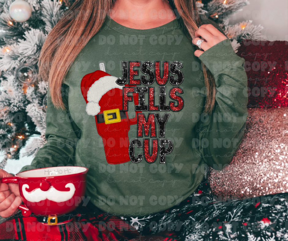 2906 Faux Glitter Jesus Fill My Cup Corduroy Cup *DREAM TRANSFER* DTF