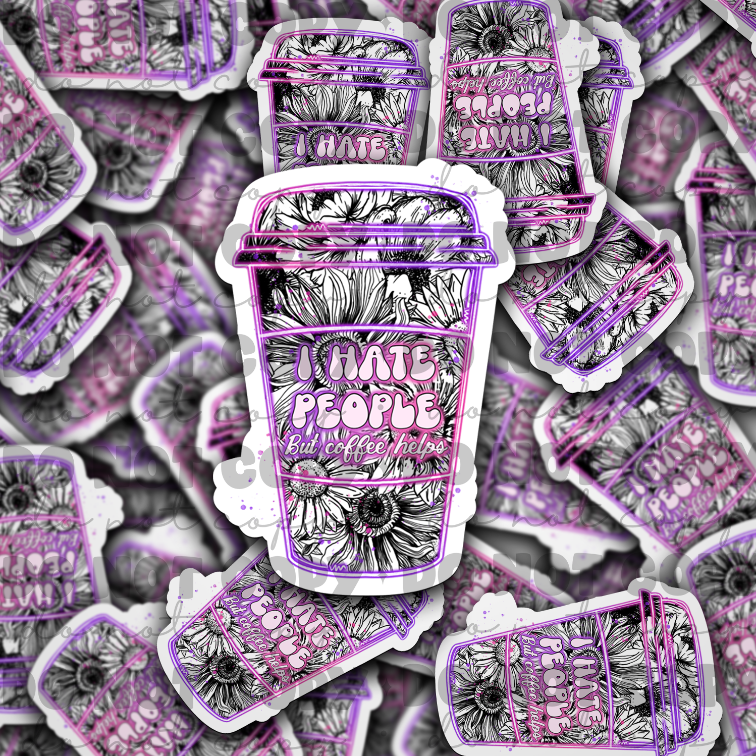I hate people but coffee helps Die cut sticker 3-5 Business Day TAT