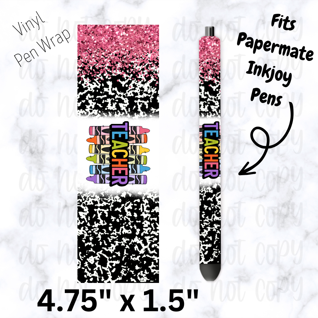 Pink teacher crayon pen wrap