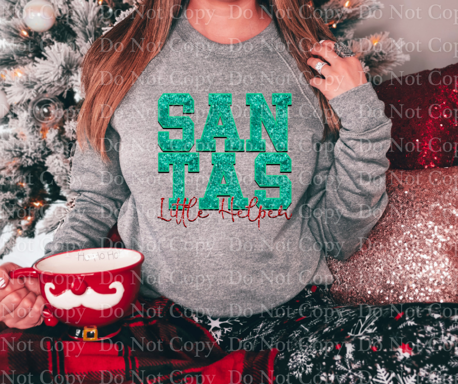 2774 Santas Little Helper Teal Glitter *DREAM TRANSFER* DTF