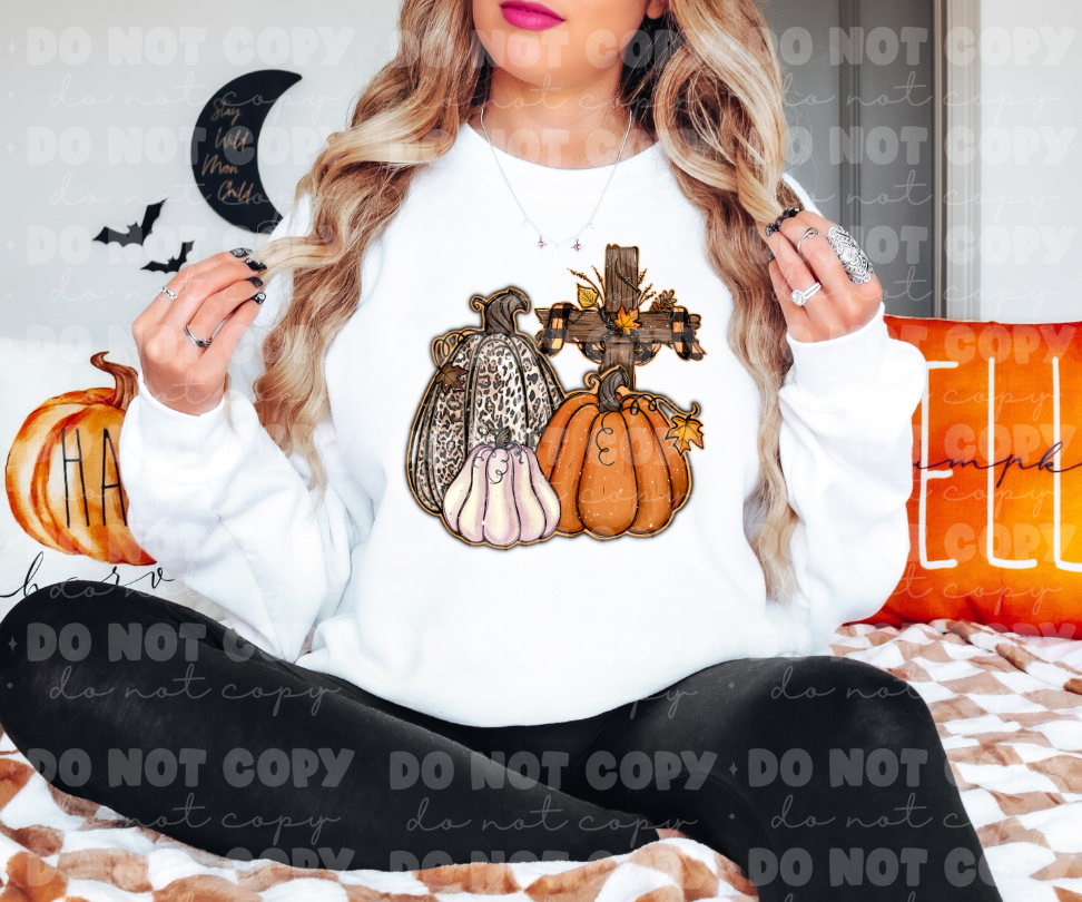 Three pumpkins and the cross *DREAM TRANSFER* DTF