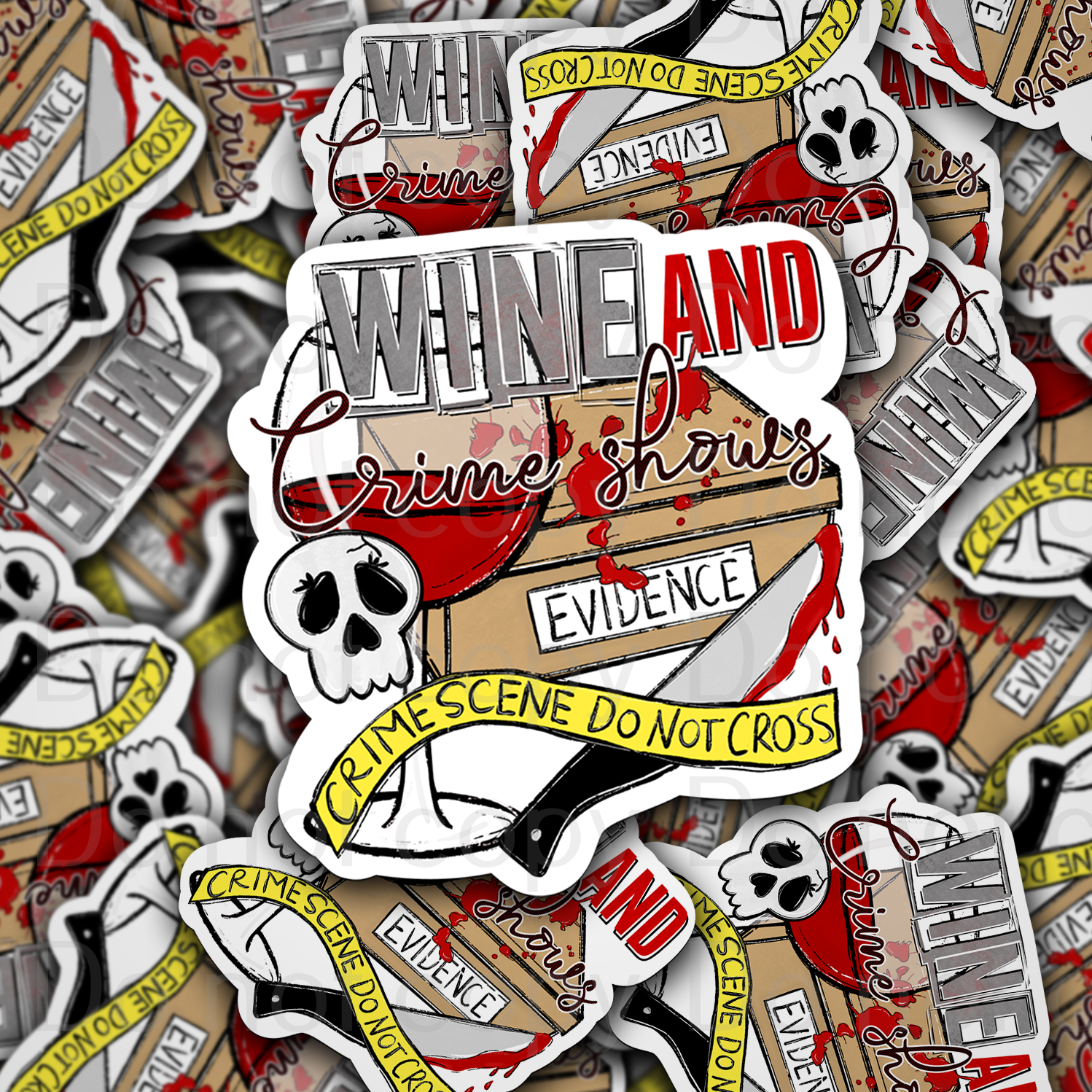 Wine and crime shows Die cut sticker 3-5 Business Day TAT